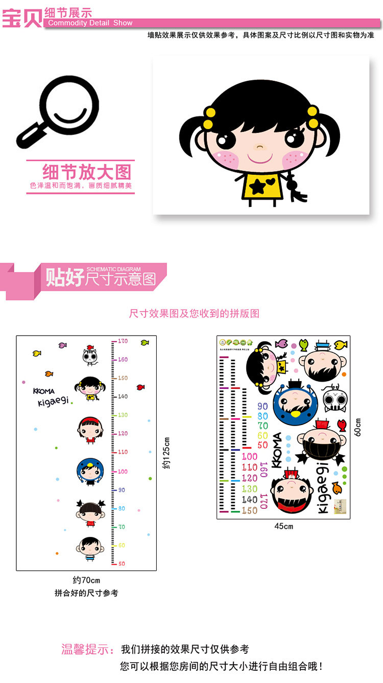 儿童身高贴可移除 宝宝量身高墙贴 幼儿园装饰教室布置墙面贴纸