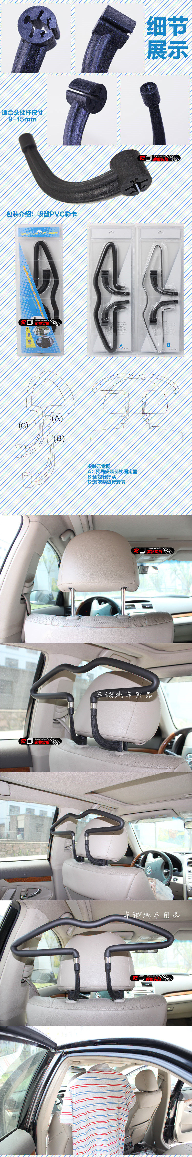 [Item Description: Car hanger apply to the use of various brands of vehicles, the device is fixed to the car on the front seat of steel pillars, installation is very simple and quick, car racks suitable for all kinds of hanging clothes, such as suits, shirts , coats, jackets, uniforms, sweaters, vests, both to avoid wrinkling stain clothes, they will not take up interior space, providing great convenience for you and the owners. This section Luxury installation step more concise, steel sleeve plastic packages and then loaded on the headrest pillar can be. can be hung for all kinds of clothing, suitable for all kinds of vehicles, quick and easy installation.