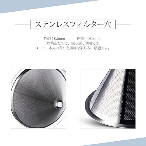 【耐久性】:上質なステンレスを活かしてフィルターが不要なので、何度も繰り返して利用することができます。