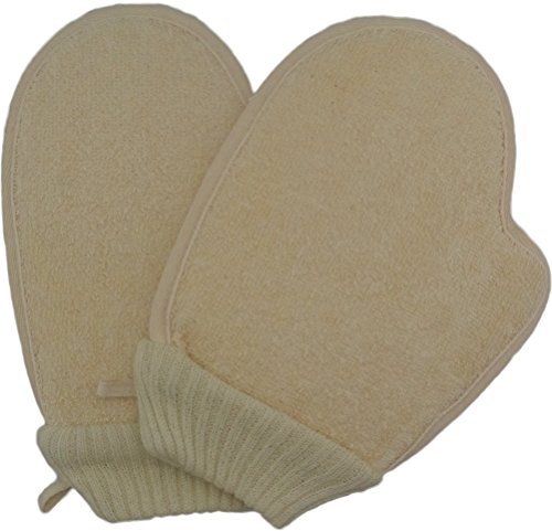 2 Pieces 100% Natural Exfoliating Linen Fiber Loofah Rub Glove Mitt Mitten- Bath Sponge Scrubber Remove Dead Skin- Great for Skin Care in the Bath -...