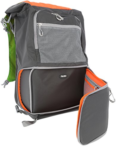 Zwei Hauptfacher und ein Fach mit Rollverschluss - flexible Gestaltung des separaten Einsatzes fur die Kameraausrustung - zusatzlich diverse Facher aus Netzmaterial