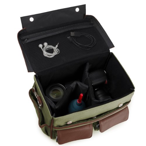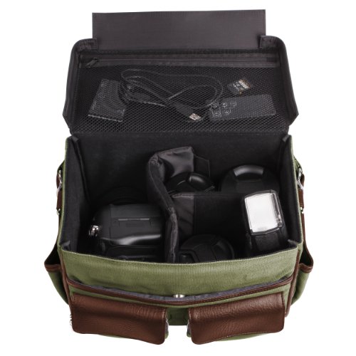 Lencca LenCoreenGBRN Coreen SLR Camera Bag with Removable Shoulder Strap (Forrest Green/Espresso Brown)