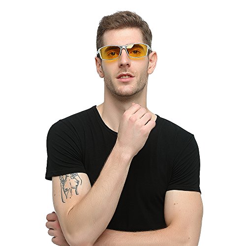 Product Description Functional and Features ?10 patents of night driving functions, effectively enhance driving safety at night. ?Aluminum magnesium frame with flexible arms to fit different faces. ?Double-scratch guard lens coating. ?Anti-reflective lens coating. ?Cuts glare from streetlamps and headlights. ?Helps block scattered blue light. ?Micro-infused yellow filter softens harsh light. ?Relieves eyestrain. ?Removes 99 % of ultraviolet-a and b rays. ?Wear comfortable, 57% lighter than traditional glass. ?Perfect for night driving and all outdoor activities: golf, running, sailing ect. ?Cool designer sports sunglasses for everyone.