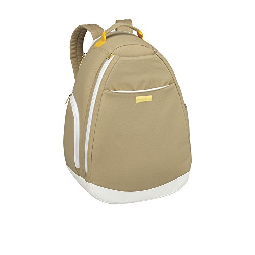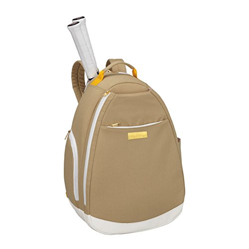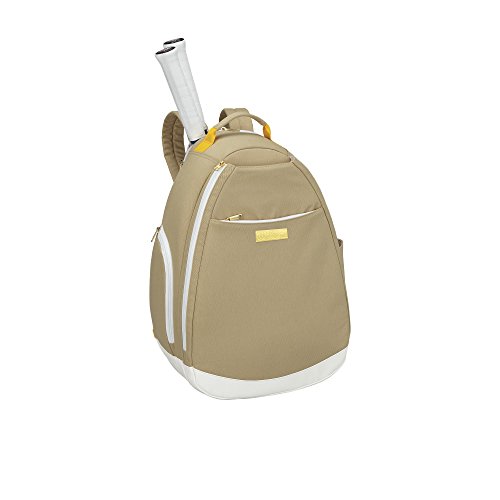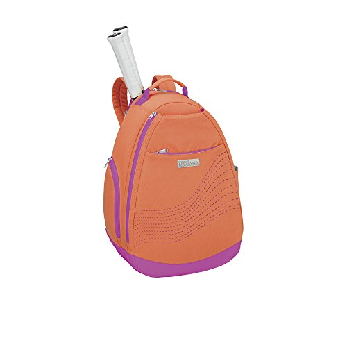 Studio : Wilson Publisher : Wilson Binding : Misc. Product Description The Wilson Women's Collection Tennis Backpack is sleek and feature packed. Able to hold up to two racquets, this backpack also has a large main compartment to hold items such as shoes and apparel. To store other large equipment, there is a large accessory pocket. Valuables can be kept safe in the small accessory pocket. Grab this backpack easily by the small handle on top or use the two padded straps to put over both shoulders. 0