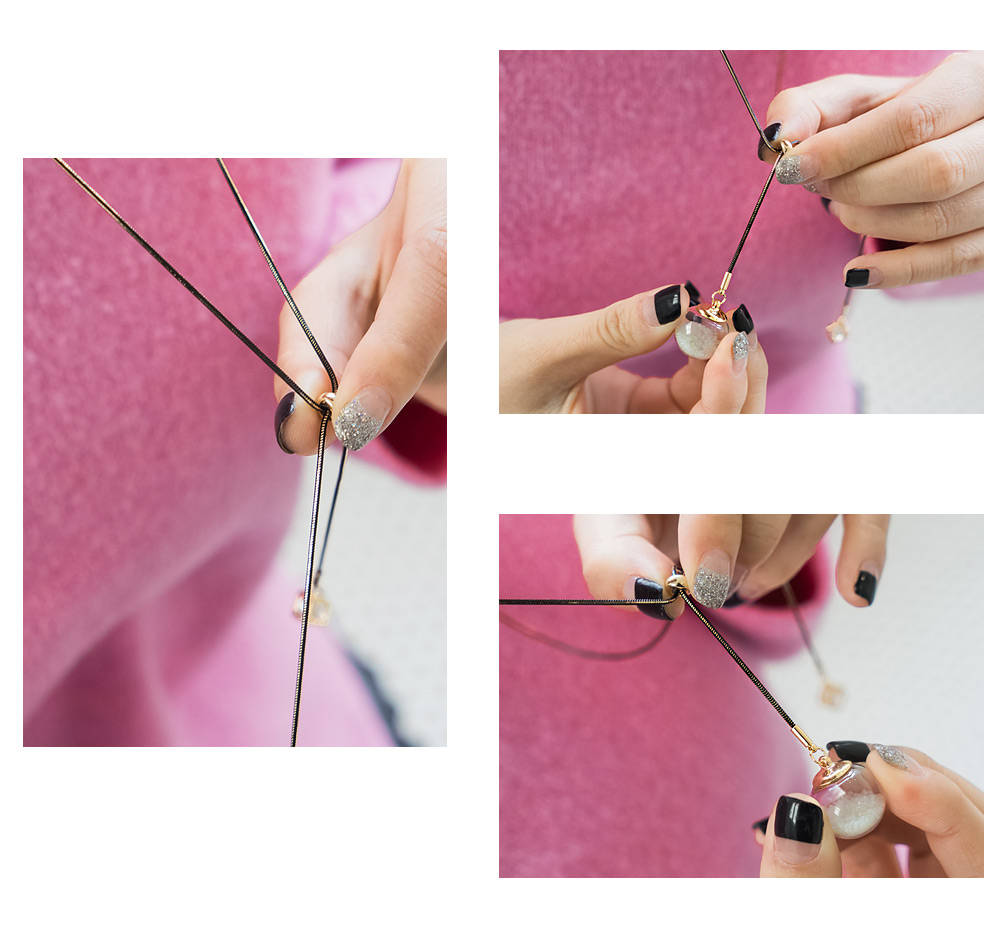 중앙에 원형 장식을 움직여 길이를 조절할수 있어