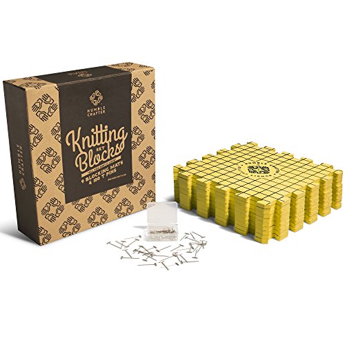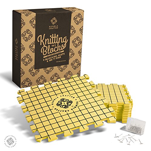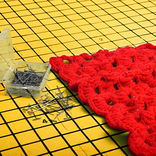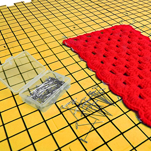 Blocking Mats for Knitting - Precise Grid with 1 inch squares - Includes 100 T-Pins for Needlepoint and Crochet - Yellow