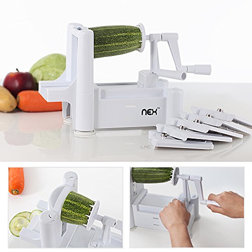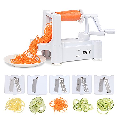 FEATURES: A perfect and healthy gift idea Cleaning brush included The product comes with blade storage function 5 types of blade satisfy your need for any shape Perfect for making beautiful salads, veggies toppings, or healthy snacks