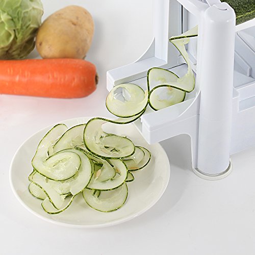 Funny cooking, heathy life Excellent for making veggie pasta or spirals for healthy vegetable meals. Perfect for making quick low carb, healthy veggie noodles from firm fruits/veggies like apples, onions, carrots, zucchinis, cucumbers, cabbages, beetroots, turnips, rutabagas, cucumbers, radishes, potatoes, sweet potatoes, squashes, and more. Works great even for long and wide vegetables.