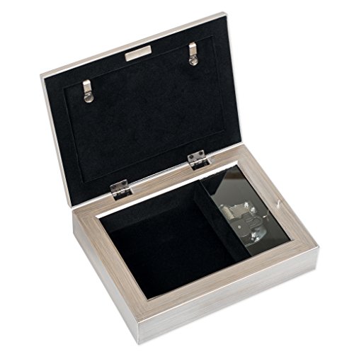 -. Binding : Kitchen -. Brand : Cottage Garden Collections -. Color : Silver -. Feature : Beautiful inlaid jeweled photo frame lid - You can replace picture with 4x6 inch personal photo / Watch the music mechanism play through the glass on the inside of the box / 4 x 4 inch inside cavity to hold jewelry and keepsakes with black velvet lining / Beautiful brushed metal finish with jeweled inlay / Dimensions: 8 x 6 x 2.5 inches -. Label : Cottage Garden, Inc. -. Manufacturer : Cottage Garden, Inc. -. ProductGroup : Home -. ProductTypeName : HOME -. Publisher : Cottage Garden, Inc. -. Size : 8 x 6 inches -. Studio : Cottage Garden, Inc. -. Title : Brushed Silver Jeweled Inlay Jewelry Music Box