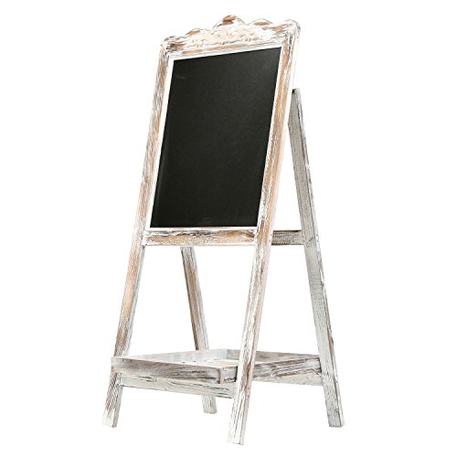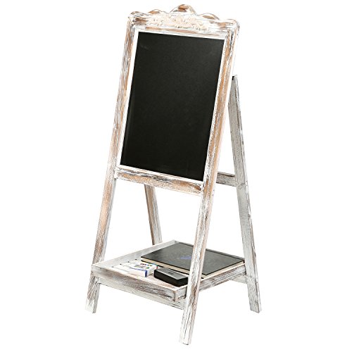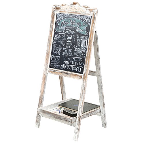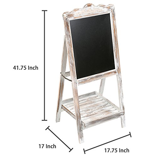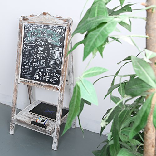 Large Torched Wood Sidewalk Chalkboard Easel Sign with Display Shelf, Vintage Style Sandwich Memo Board