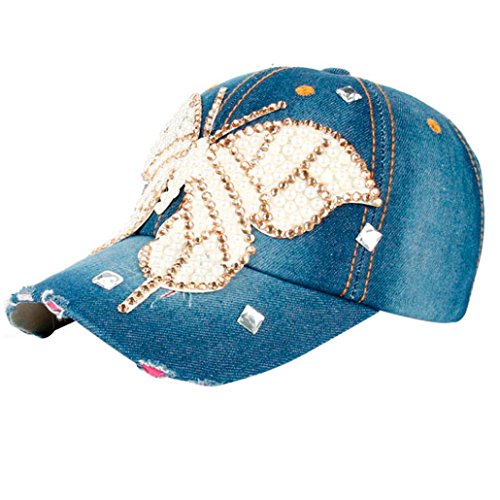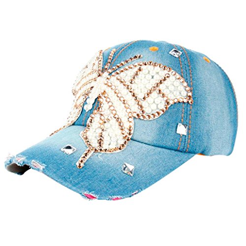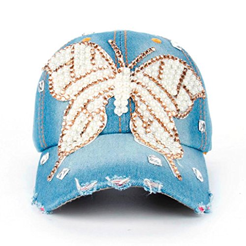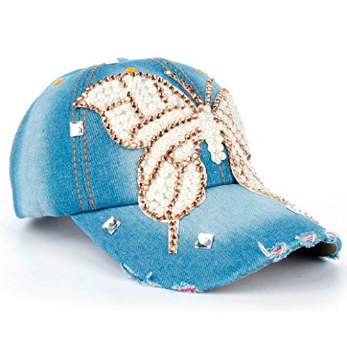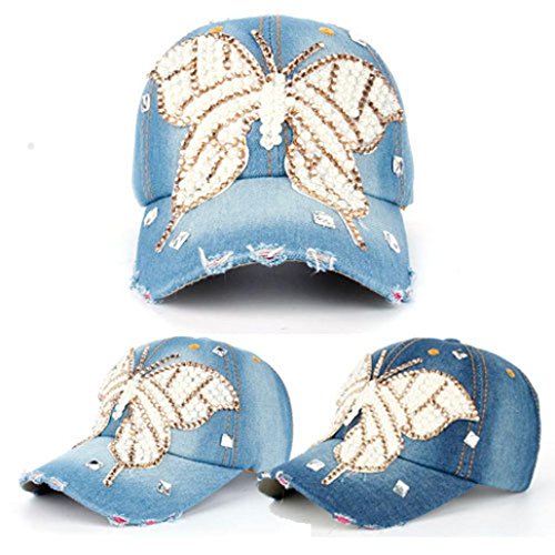 (Highpot)/Accessories/Hats/DIRECT FROM USA/Highpot Women Rhinestone Butterfly Denim Baseball Cap Snapback Flat Hat
