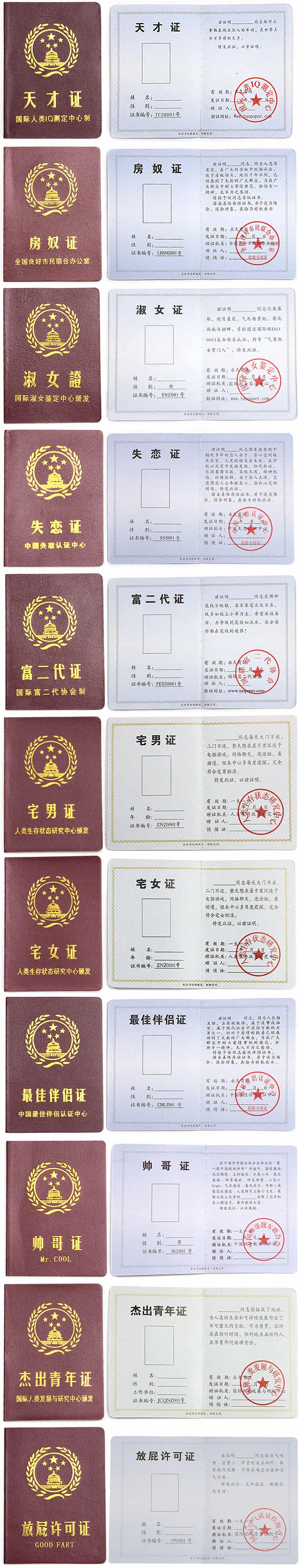 Witty funny certificate content? with elegant certificate covers?