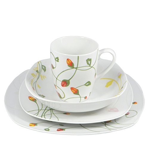 16 piece set Service for 4 Made of high-fire porcelain Made in china, FDA certified lead & cadmium free Dishwasher and microwave safe Item model num : 16PCDWA