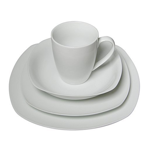 Francois et Mimi 16-Piece High-Fire Porcelain Dinnerware Set, Classic Square, White