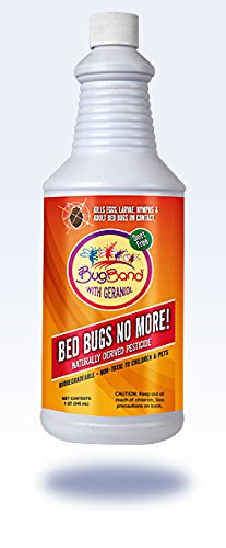 -. Brand : Bug Band -. EAN : 0786216877086 -. Feature : Kills eggs, larvae, nymphs and adult bed bugs on contact. / Biodegradeable. / Non-toxic to fish and water. / Safe for children and pets. / Safe to use around food and food preparation areas. -. Label : BugBand -. Manufacturer : BugBand -. Model : 87708 -. PackageQuantity : 1 -. ProductGroup : Lawn & Patio -. ProductTypeName : OUTDOOR_LIVING -. Publisher : BugBand -. Studio : BugBand -. Title : Bed Bugs No More All Natural Spray DEET Free 87708 Quart Bottle with Trigger Sprayer -. UPC : 786216877086