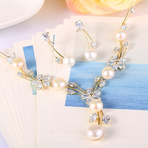 Made of crafted environmental friendly Cubic Zirconia and Simulated Pearls, this jewelry shines with grace and beauty. And the metal surface is of high polished finish.