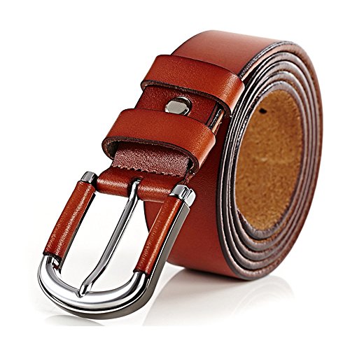 -. Feature : Blets is 1.25 inches wide, the total length include buckle is 48 inches, fit for 37-43 inches (95-110 cm) waist line,the fasten length can be adjusted. / It has two layers, outer layer is made by sturdy material, inner layer is 100% genuine leather belt. / The buckle is special designed with leather covered and two colors alloy, it is 2 inches wide and 2.2 inches long. / Jeans wear leather belt and casual wear leather belt for women. Package box included.