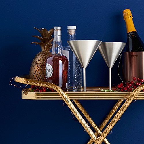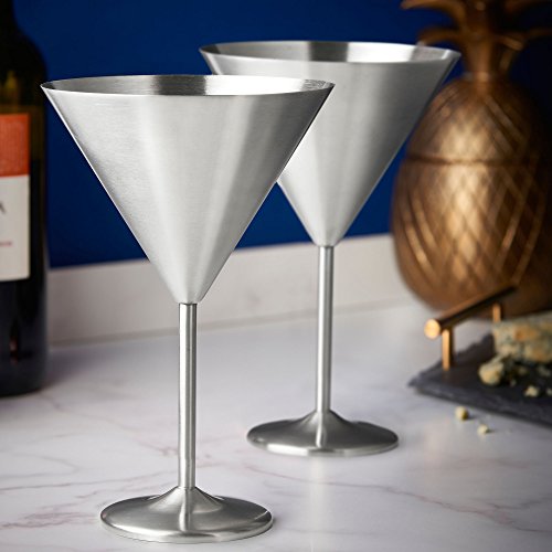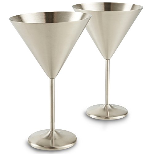 VonShef Set of 2 Martini Glasses Add a modern twist to your martini cocktails with the VonShef Set of 2 Martini Glasses. Constructed from high quality stainless steel, these practical and sophisticated glasses are shatterproof - and will outlast their traditional glass counterparts. As stainless steel is heavier than glass there's less chance of your martini tipping over. Plus, as stainless steel boasts insulating properties, your drink will stay chilled for longer. Elegant Modern Design As well as martinis, the glasses are also ideal for serving other types of cocktails, cold drinks and ice creams, sorbets and prawn cocktails too. Elegantly designed with a long stem and low wide bowl for garnishing with fruit or ice. Features a tarnish-resistant brushed satin interior and exterior. Cocktail Dinner Parties Perfect for use in the home as well as cocktail and dinner parties, picnics, road trips, boat trips or relaxing in the garden on a sunny day. Supplied in an attractive gift box - perfect for a Christmas, birthday or housewarming present. Each glass has a 15oz capacity and measures approx. 7.5" X 5" (Length X Diameter). Hand wash only - not suitable for dishwasher. 0 |
