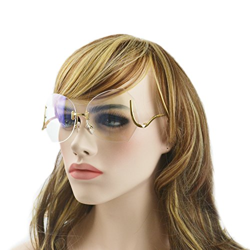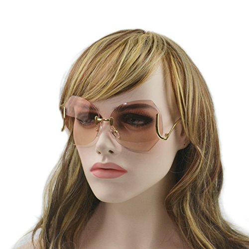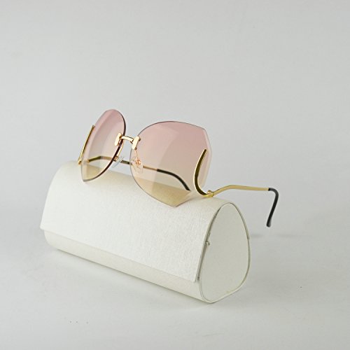MINCL/unique Design Rimless Sunglasses Clear and Color With Box (gold, pink)