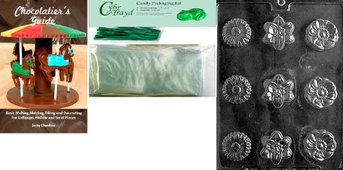 Cybrtrayd MdK50GRBk-F095 Flower Soap Ass't Fruits and Vegetables Chocolate Candy Mold with Chocolatier's Bundle, Includes 50 Cello Bags, 50 Green Twist Ties and Chocolatier's Guide