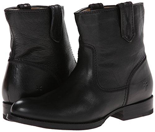 Studio : FRYE Publisher : FRYE Binding : Shoes Product Description Easy pull-on design. Features zigzag stitching and antiqued black polish. Smooth leather lining offers a comfortable next to skin feel. Cushioned leather footbed provides all-day comfort. Durable leather outsole with leather and rubber combo heel. Imported. 0