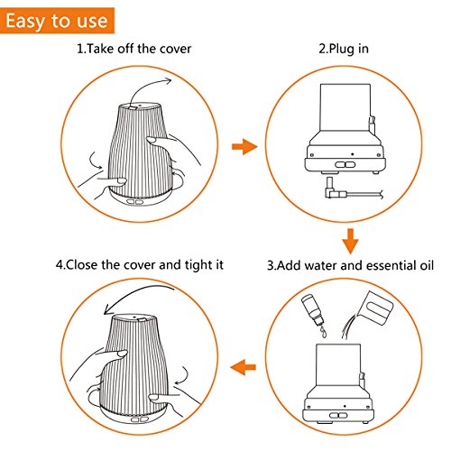 ? Easy to Use: It has one touch start feature, will auto off when the tank is empty. It can be safely placed anywhere effortless. Just need to fill it with water plus few drops of essential oil, and start your wonderful day and sweet night.