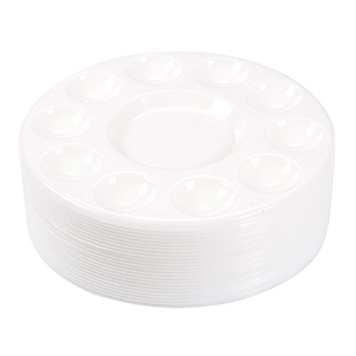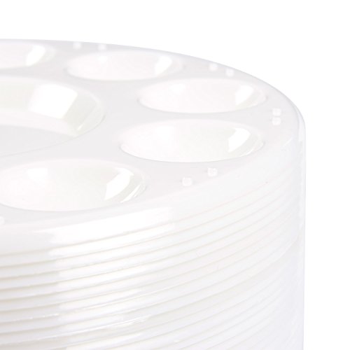 24-Pack Round Paint Tray - Plastic Palettes, Artist Watercolor Mixing Tray, 10 Wells, White - 6.7 x 0.3 x 6.7 Inches