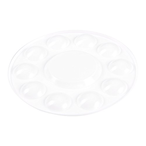 LIGHTWEIGHT PLASTIC MATERIAL: This palette is made of plastic. It is lightweight and sturdy enough to hold a wide variety of paint types and colors. Each palette features several indentations for holding your paint types