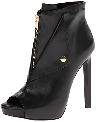 - Feature : Peep-toe bootie featuring smooth leather upper with snap and front-zip closure