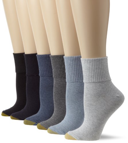 Gold Toe Women's 6 Pack Turn Cuff,White,9-11
