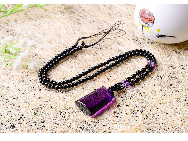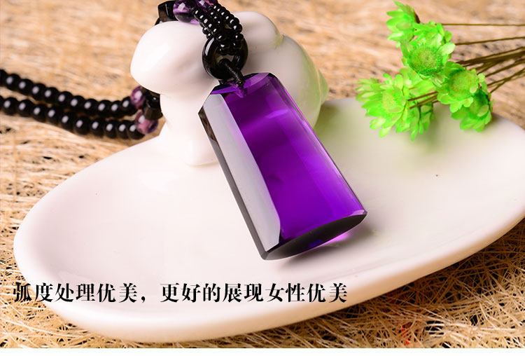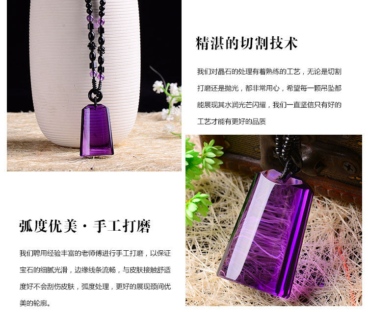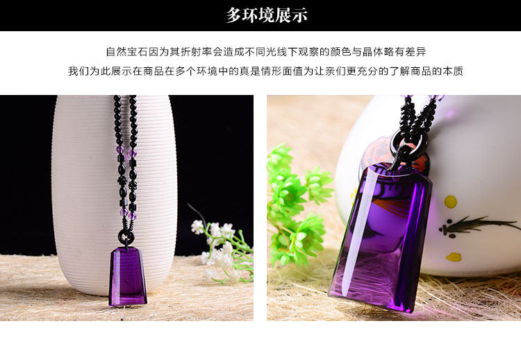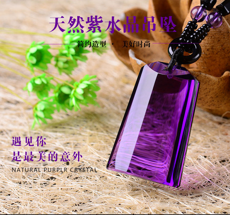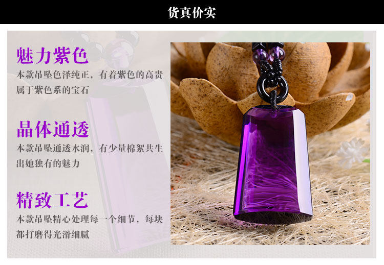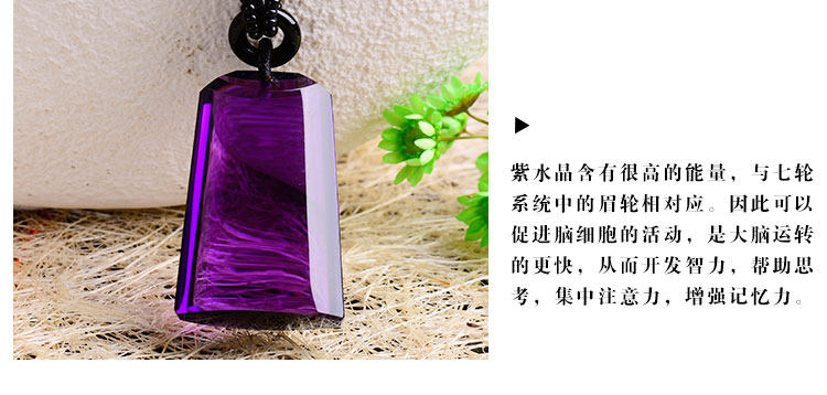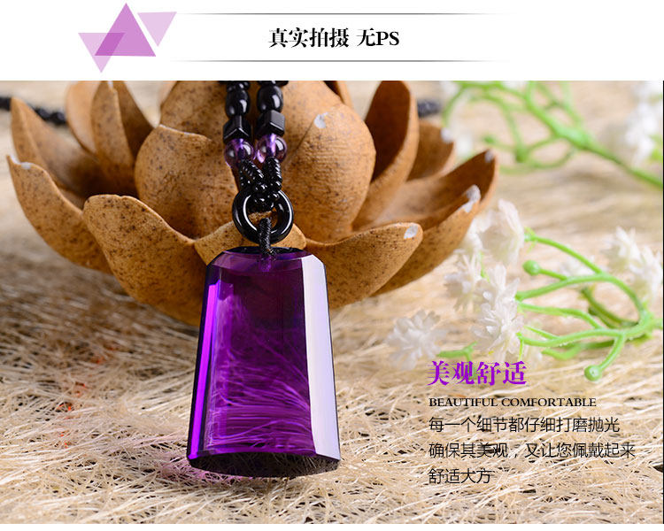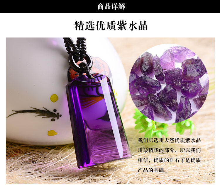 正品天然紫水晶无事牌(平安)项链吊坠