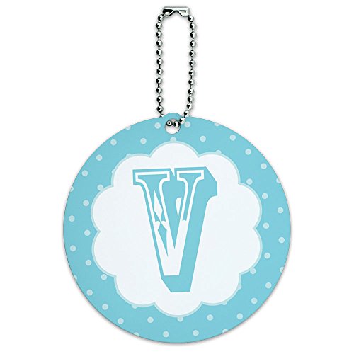 (Graphics and More)/Accessories/Luggage, Bags Travel/DIRECT FROM USA/Letter V Initial Flower Blue Round Luggage ID Tag Card Suitcase Carry-On