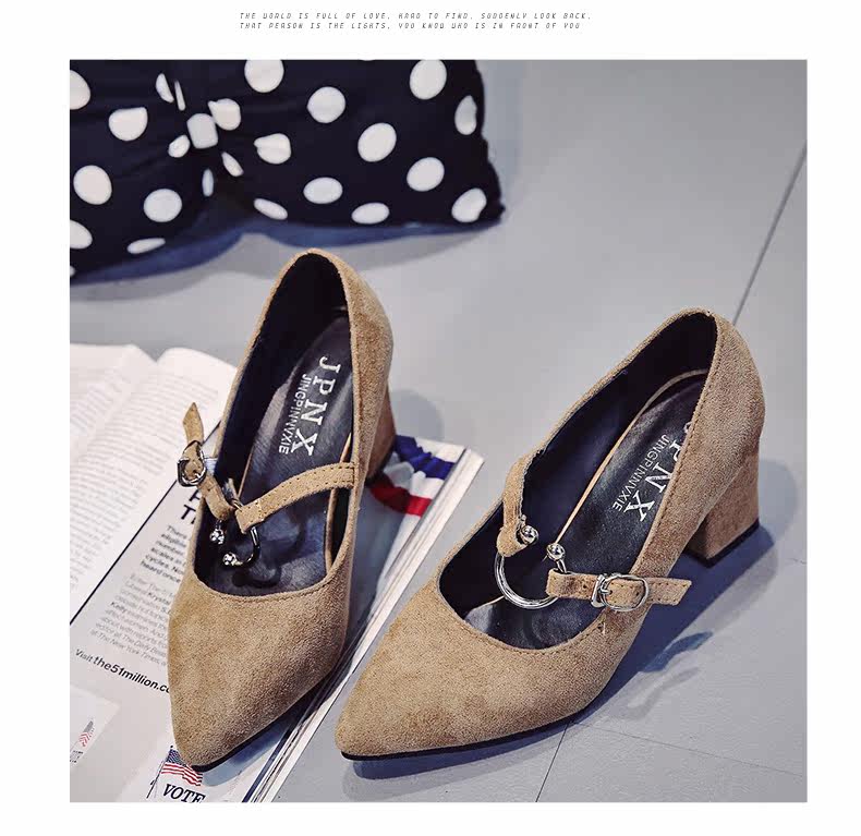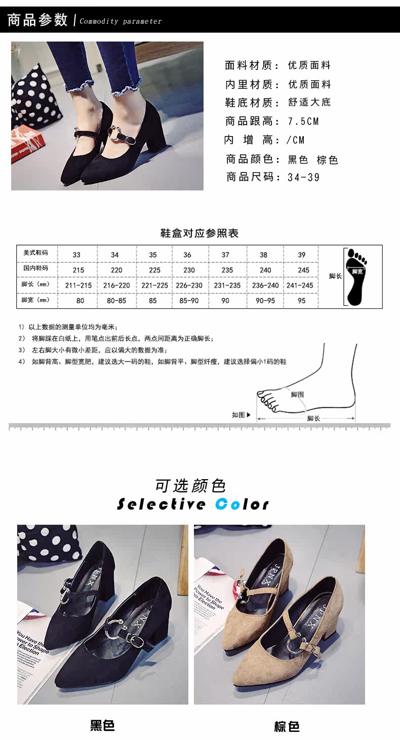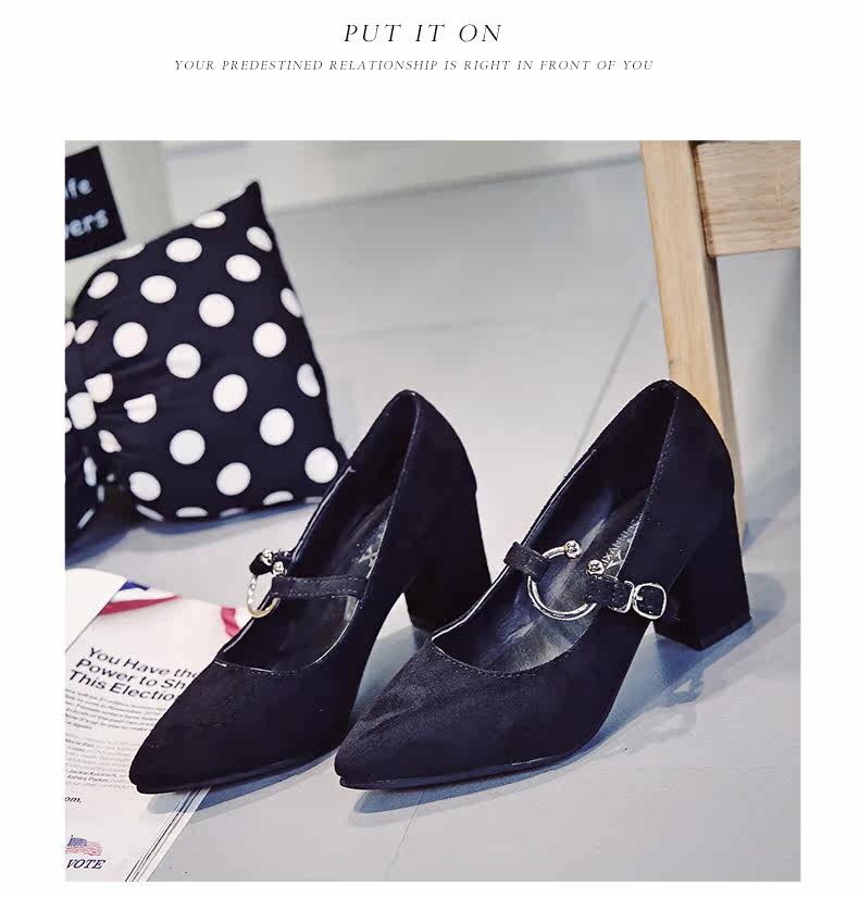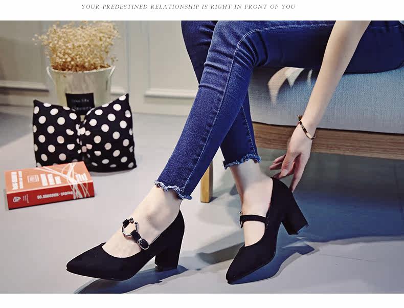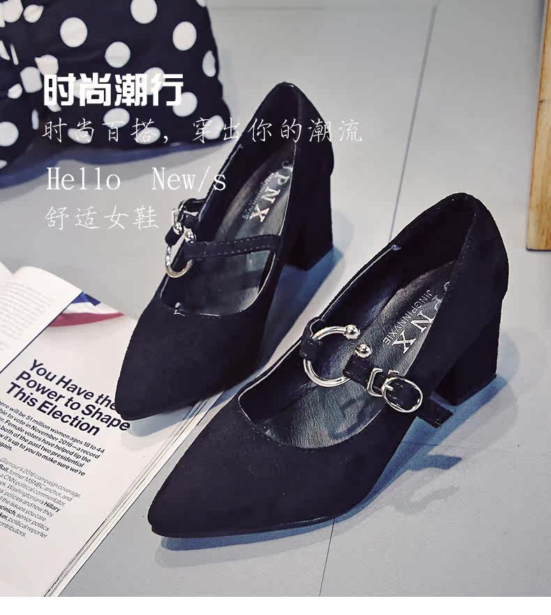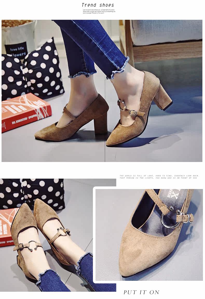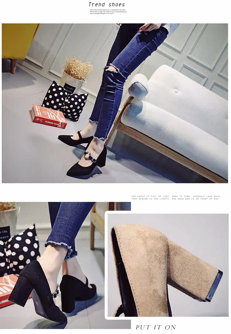秋季新款小清新高跟鞋女性感百搭粗跟浅口尖头单鞋复古女鞋子