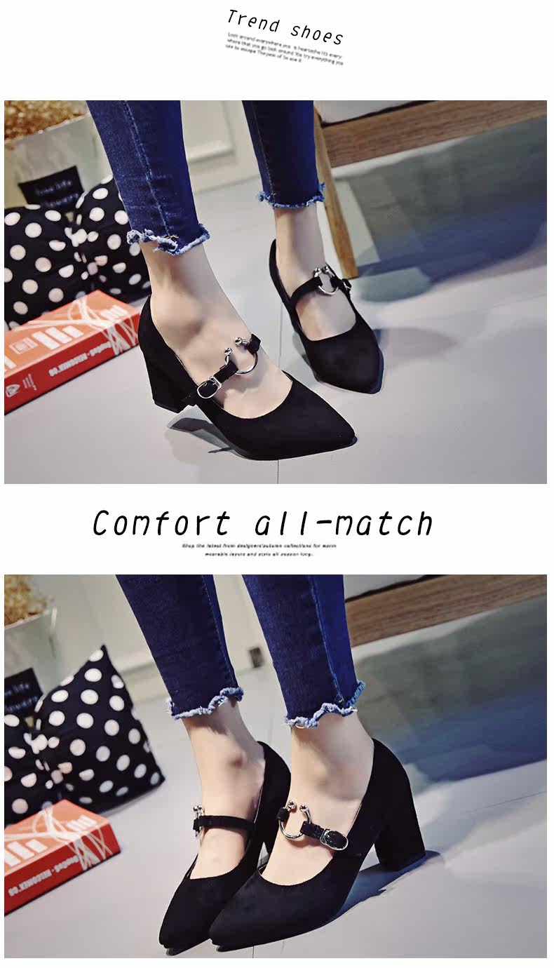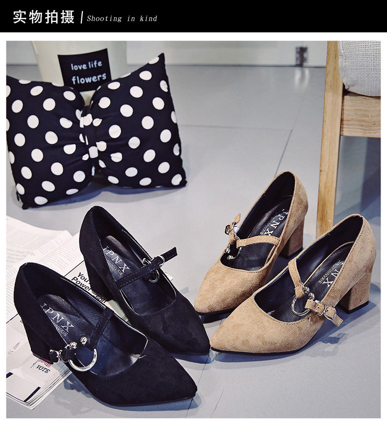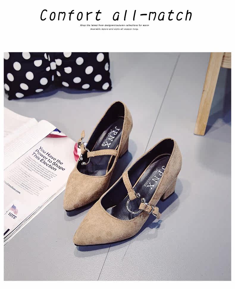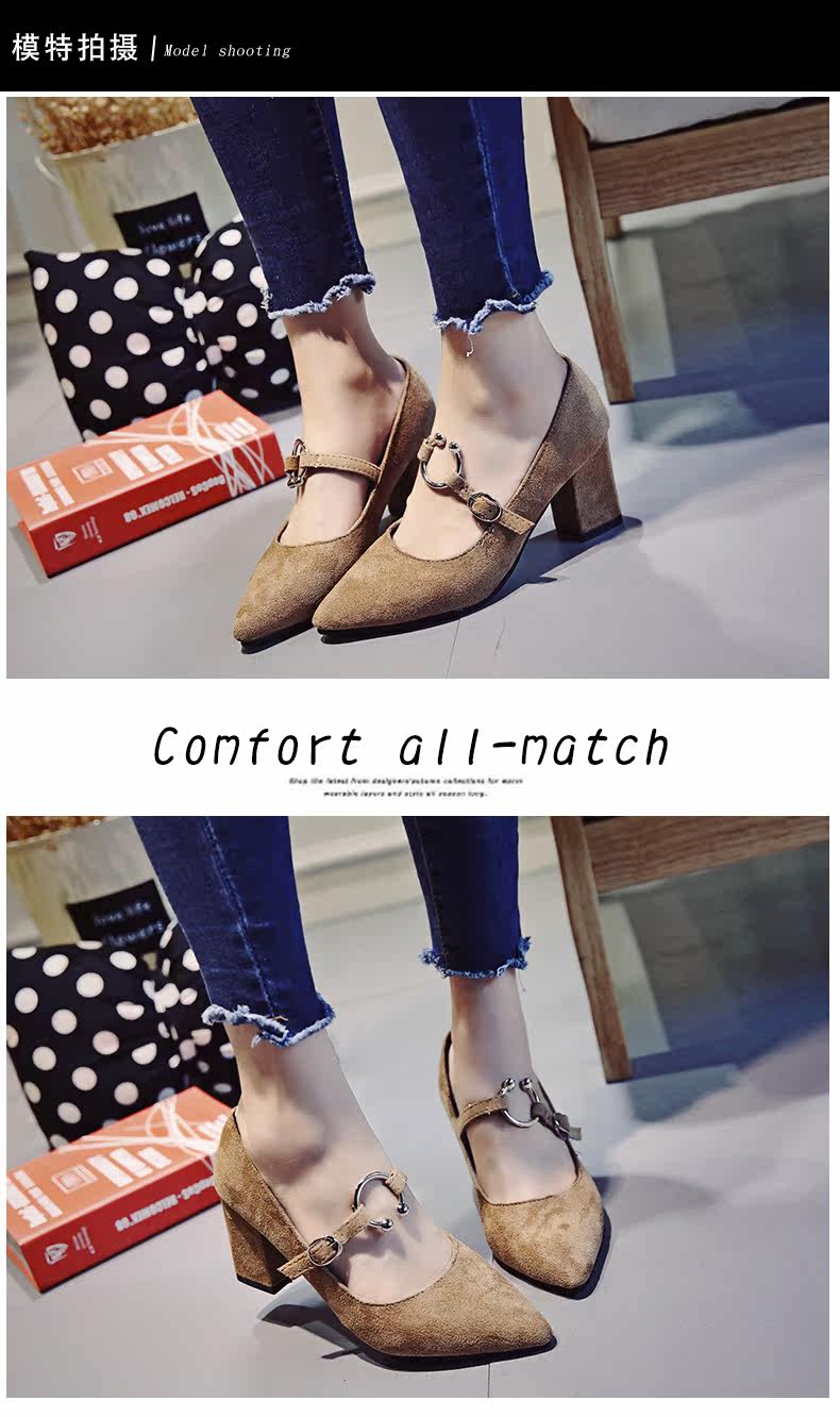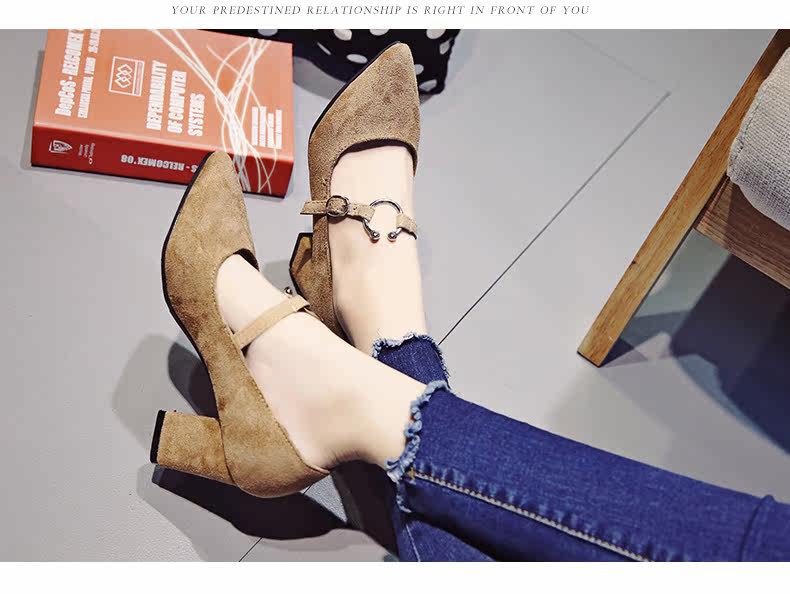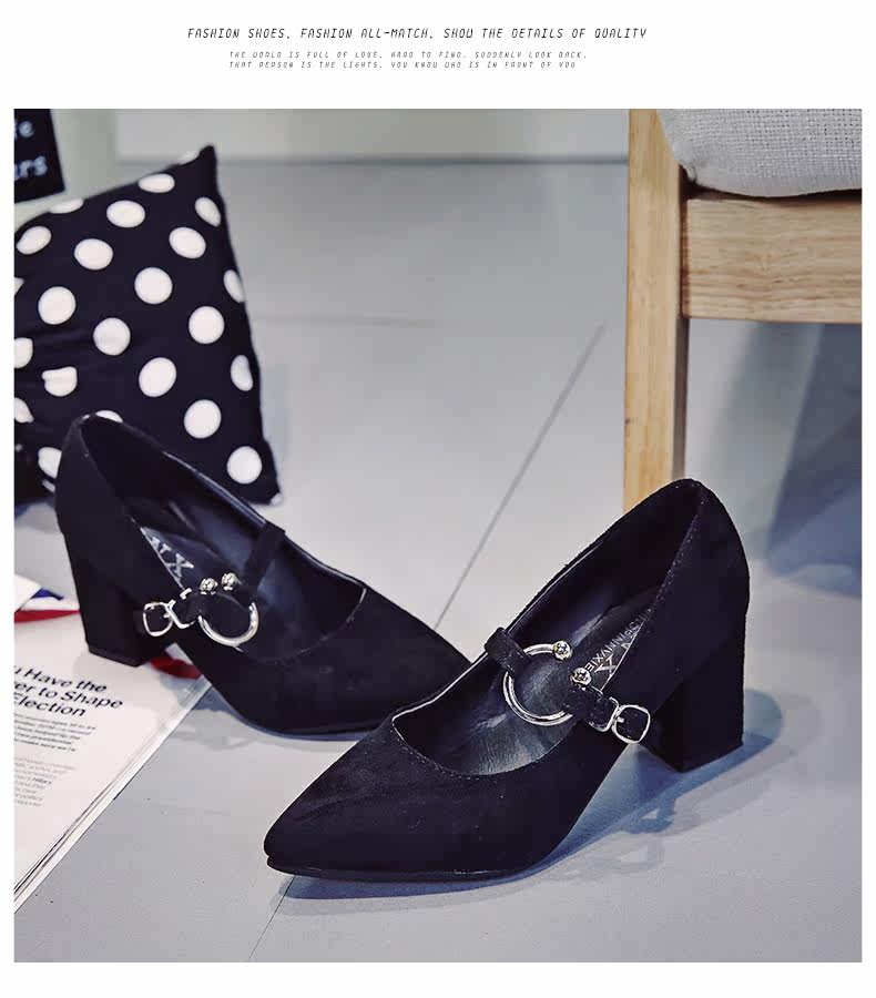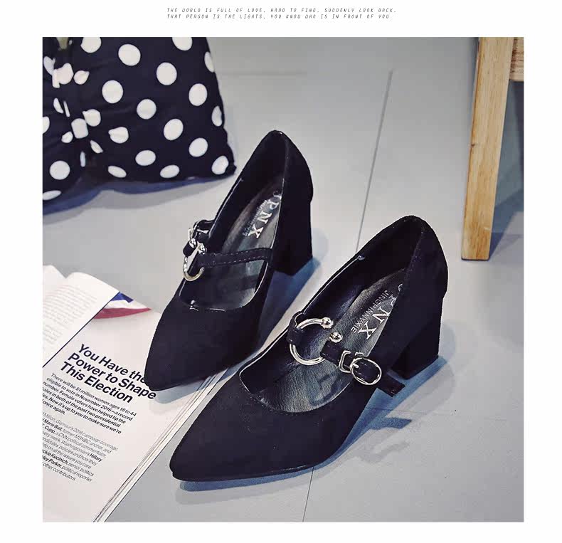 秋季新款小清新高跟鞋女性感百搭粗跟浅口尖头单鞋复古女鞋子