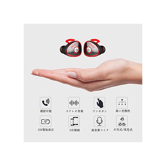 원본상품명: OKCSC ブルトゥス イヤホン bluetooth ワイヤレス 高音質 カナル型 スポツ 片耳 耳とも ミニ マイク付き 0362 レッド