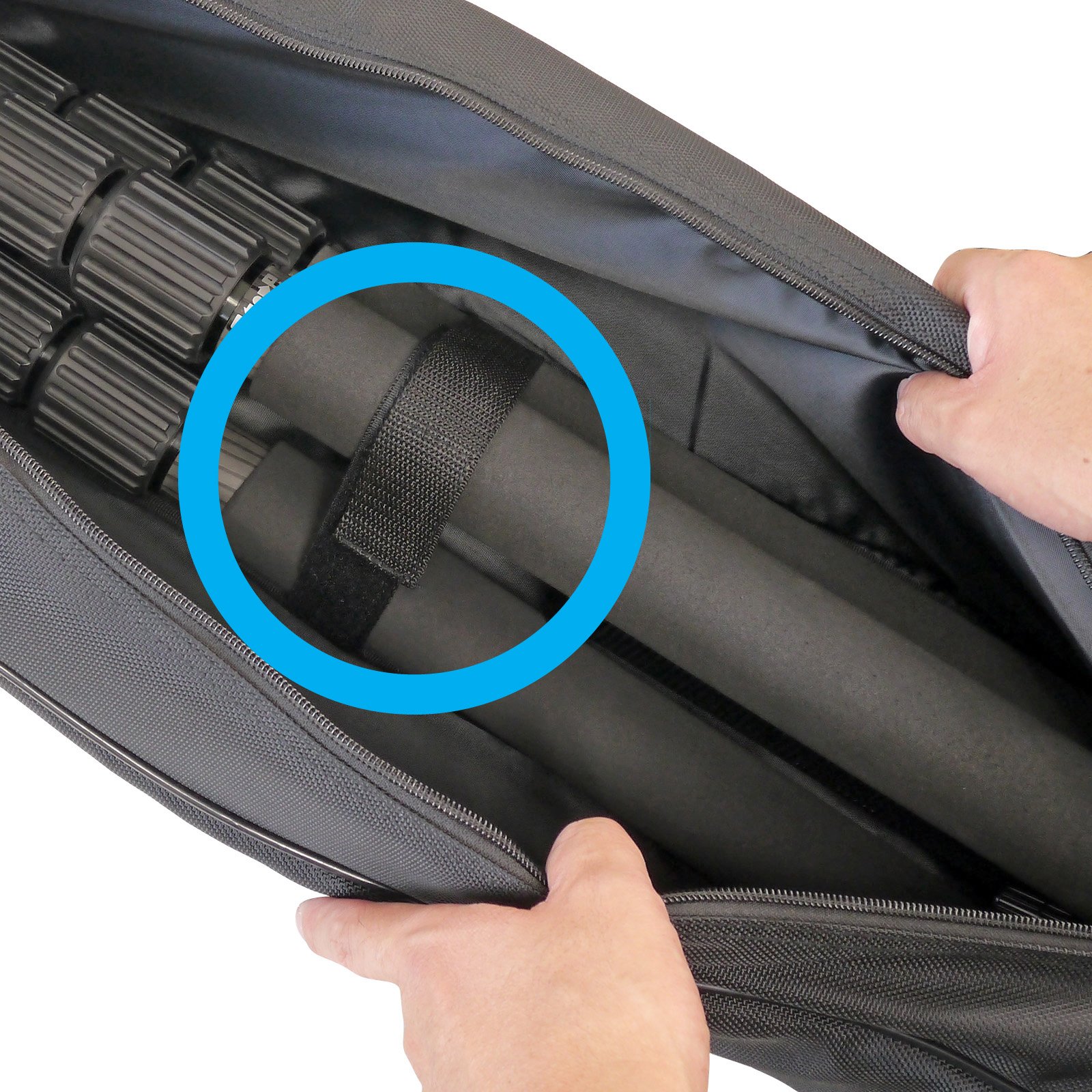 A simple tripod case that protects a tripod from shocks and scratches when it is carried.