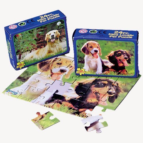 -. Binding : Toy -. Brand : U.S. Toy -. EAN : 0049392615997 -. Feature : Lot Of 12 / Size: 6.75" x 4 7/8" / Assorted Puppy Dog Designs / 25 Piece Puzzles -. Label : US Toy -. Manufacturer : US Toy -. Model : 1776385 -. MPN : 1599 -. PackageQuantity : 1 -. PartNumber : 1599 -. ProductGroup : Toy -. ProductTypeName : TOYS_AND_GAMES -. Publisher : US Toy -. Studio : US Toy -. Title : Dozen Dog Puppy Theme Mini Jigsaw Puzzles by US Toy -. UPC : 049392015995
