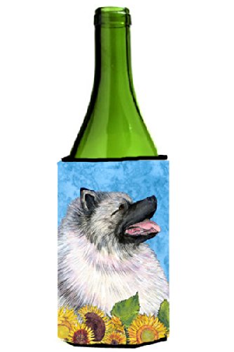 Keeshond in Summer Flowers Wine Bottle Beverage Insulator Beverage Insulator Hugger