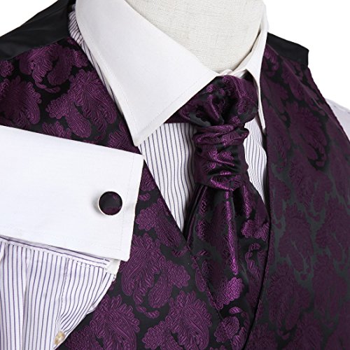 - Title : VS2021-2XL Purple Patterned Mens Style Vest Cufflinks Hanky Ascot Tie By Y&G