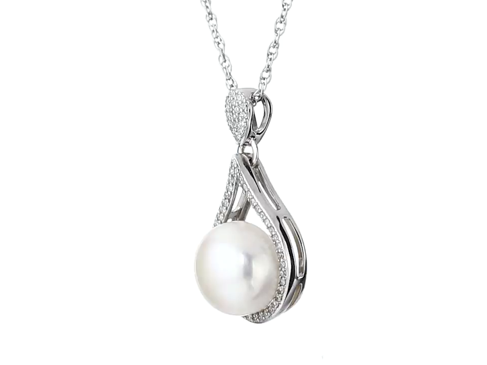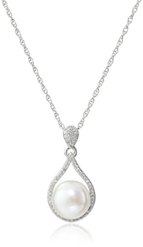 Sterling Silver Freshwater Cultured Pearl and Diamond Pendant Necklace (1/5 cttw)