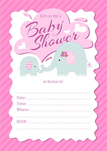 - Pink Elephant Girl Baby Shower Invites (24 ct) and 24 White Envelopes