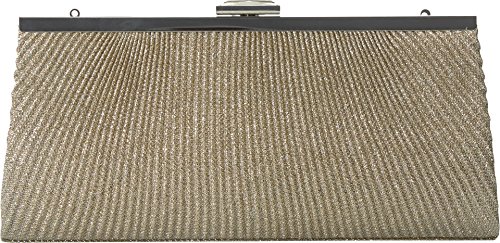 The Jessica McClintock sloan lurex pleated framed clutch will add just the right amount of sparkle and shine to any look. Wear it as a clutch or shoulder/crossbody with the added drop in strap. Also included is a back slip pocket to secure your cards and id.