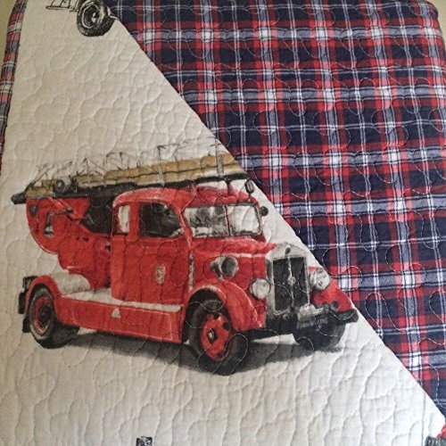 -. Brand : red trucks -. Color : multi color -. EAN : 0650181542518 -. Feature : Red Truck reversible Full/Queen 3 piece quilt set / Print of antique fire trucks on one side and plaid pattern on the other side / Vermicelli quilting pattern and solid red banding around the edges. / Made of 100% cotton, size: Full/Queen 88x92" and 2 standard shams 20x26" / Machine wash -. Label : red trucks -. Manufacturer : red trucks -. ProductGroup : Home -. ProductTypeName : HOME_BED_AND_BATH -. Publisher : red trucks -. Size : Full/Queen -. Studio : red trucks -. Title : RED TRUCK kids 3PC FULL QUEEN QUILT SET antique firetruck fire truck engine NEW -. UPC : 650181542518