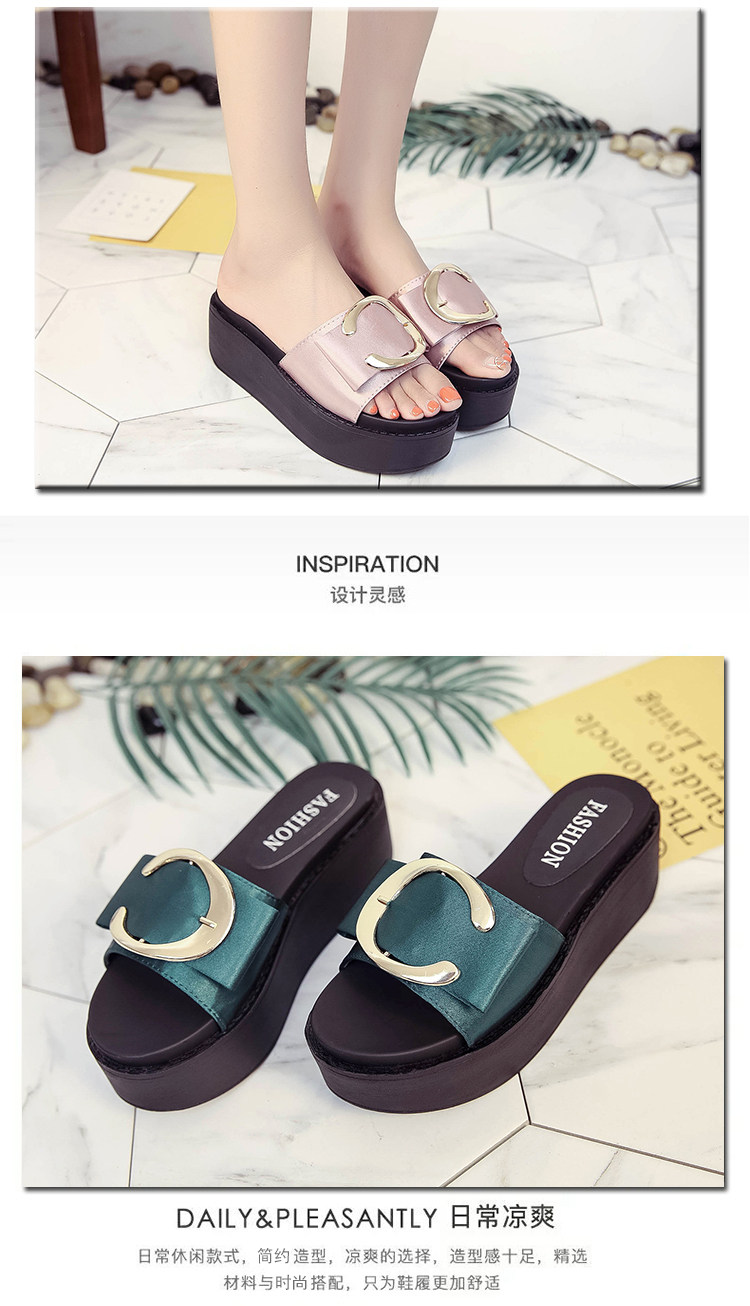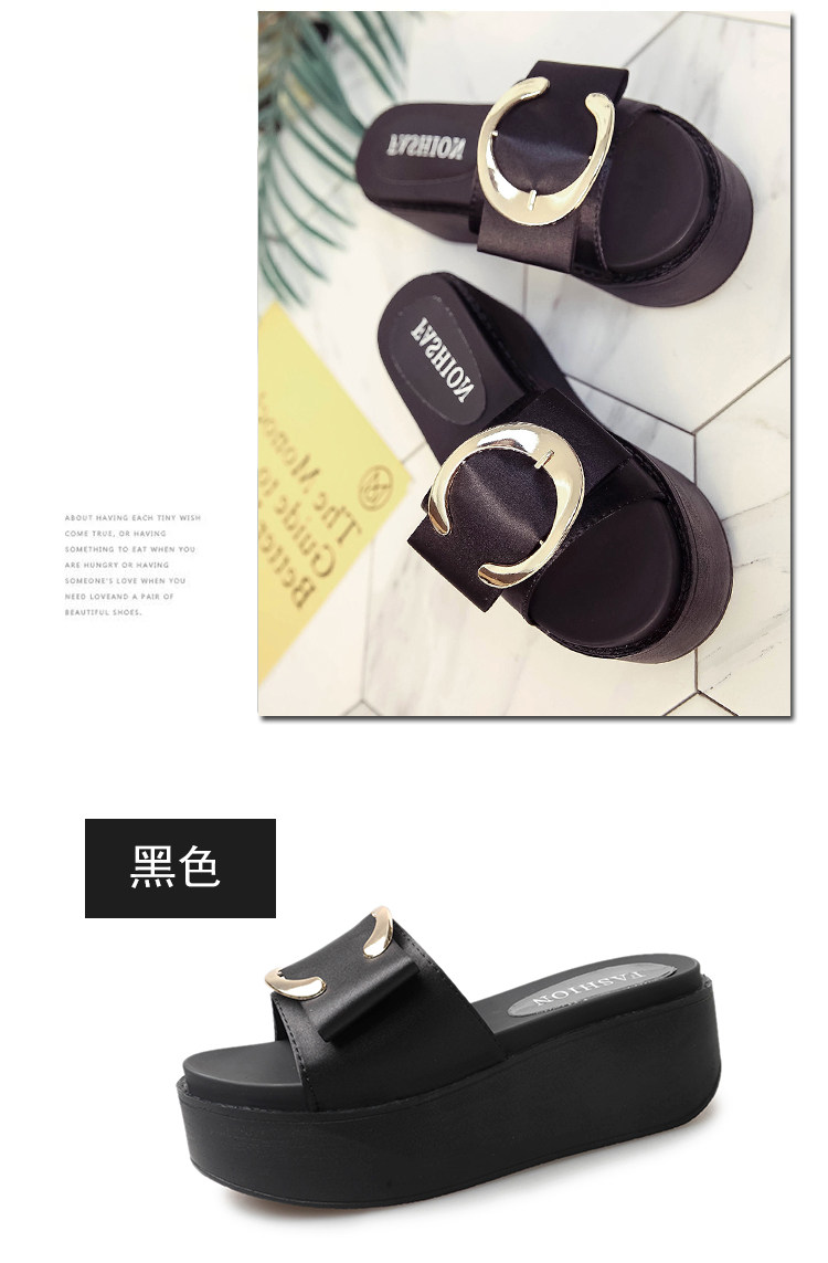 夏新款时尚外穿凉拖鞋女百搭韩版松糕厚底一字拖高跟女鞋