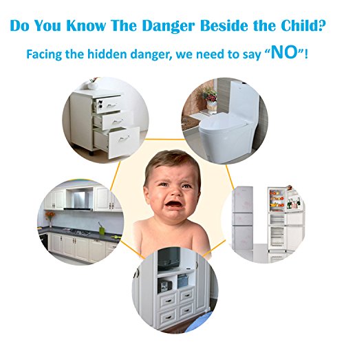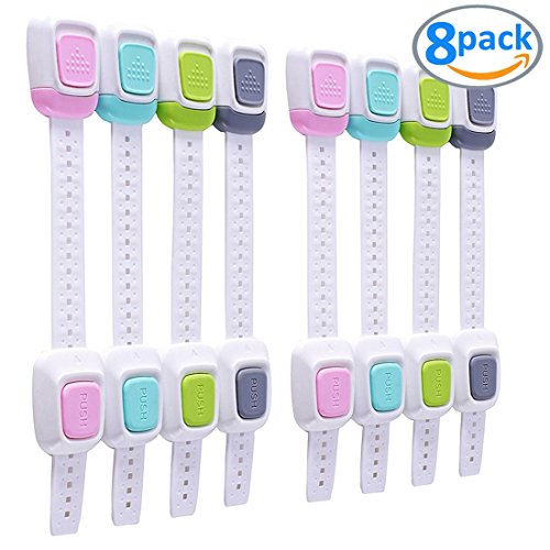 - 【8 Packs Child Safety Locks】Comes with 8 pieces Multi-purpose baby proofing cabinets locks. Securely shut your cabinets, appliances, drawers, refrigerator, toilet seats, trash cans and more. Keep your child away from the dangers in your home.