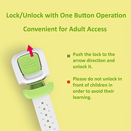 - 【Adjustable & Flexible Strap】These child safety straps not only have their adjustable length from 4.5” to 7.5” but also very flexible to maximize their use with only pressing the button “PUSH”. They work perfectly on both flat surfaces and round corners. If you feel it too long, you can also cut its length by yourself to meet your requirement.
