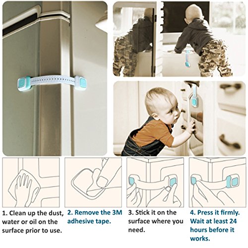 - 【Easy to Install with 3M Adhesive】Baby safety straps come with the strong 3M adhesive. You don’t need to drill holes or use screws to install it. If you want to remove the child safety locks, you just simply heat the 3M foam tape with a hair dryer and the foam will peel away easily!