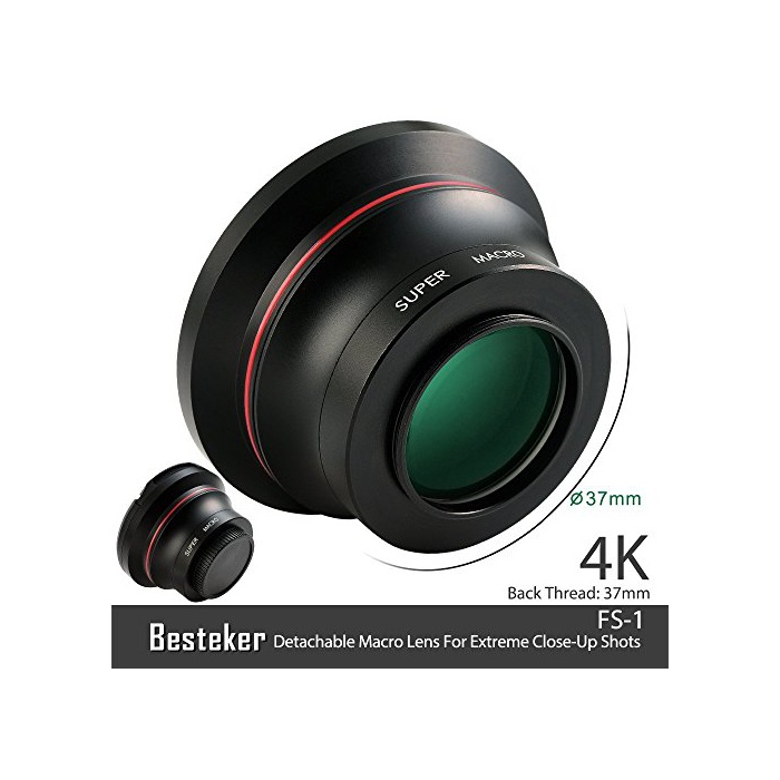 카메라 렌즈 키트 Besteker 비디오 카메라 스마호용 카메라 렌즈 (15×매크로,145°0.39×초광각 렌즈 2in1 ) 클립식 렌즈 자촬영 렌즈 37mm구경Full HD VI