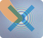 ???独自開発の技術で、フィルムの上から液晶に触れても、干渉縞が発生しません。