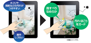 ???フィルム表面に指すべりを滑らかにする特殊AG加工を施しており、フィルムを貼ったままでも快適なタッチパネルの操作が可能です。